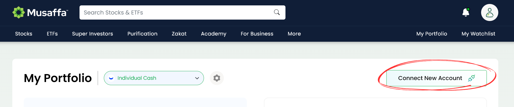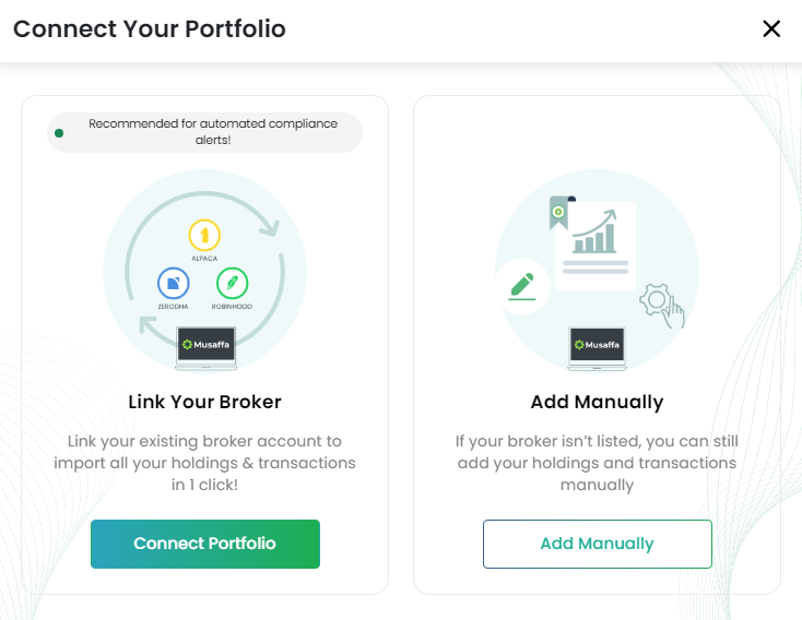 Here’s how you can connect your portfolio with Musaffa:
