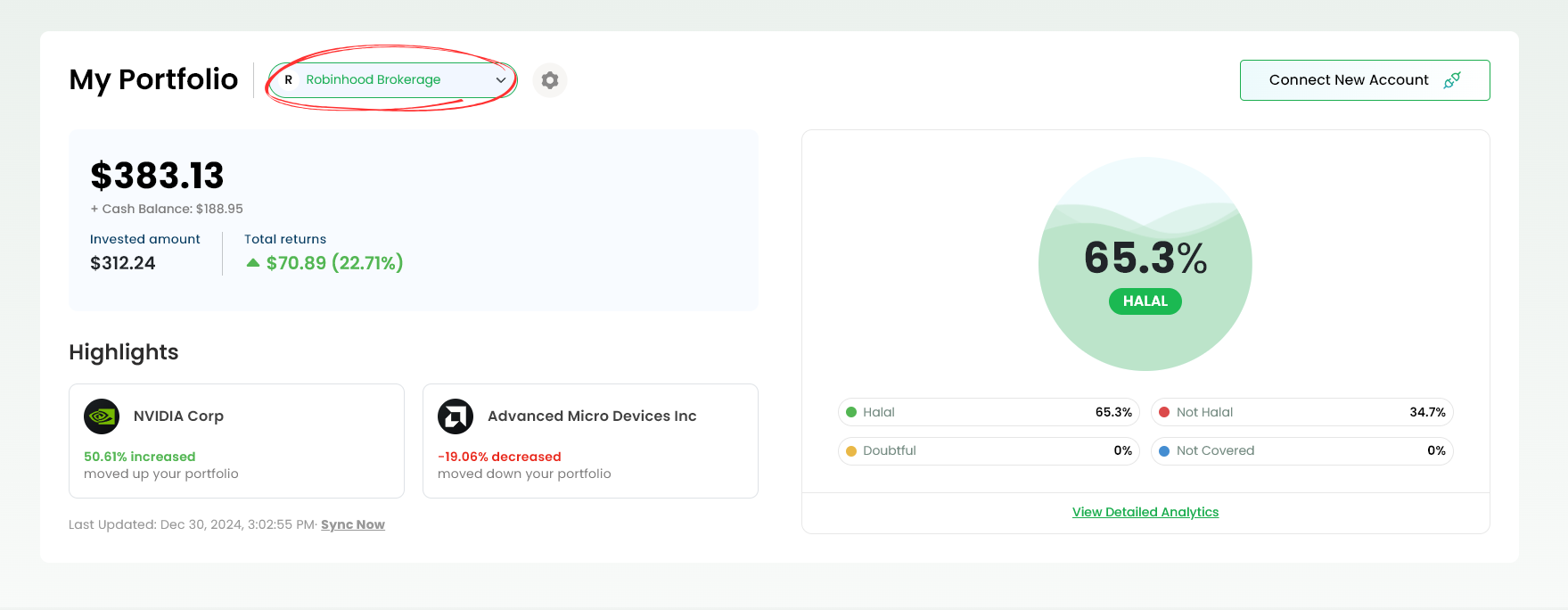 Head over to “My Portfolio” and click “Connect New Account.”