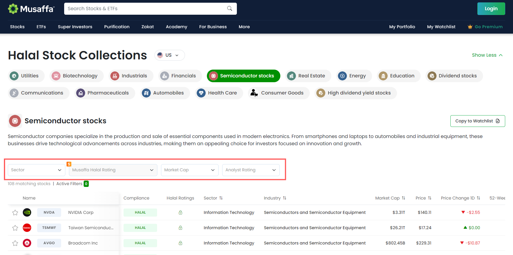 The Halal Stock Collections feature provides curated investment opportunities for halal-conscious investors. Start exploring these collections and refining your portfolio today!