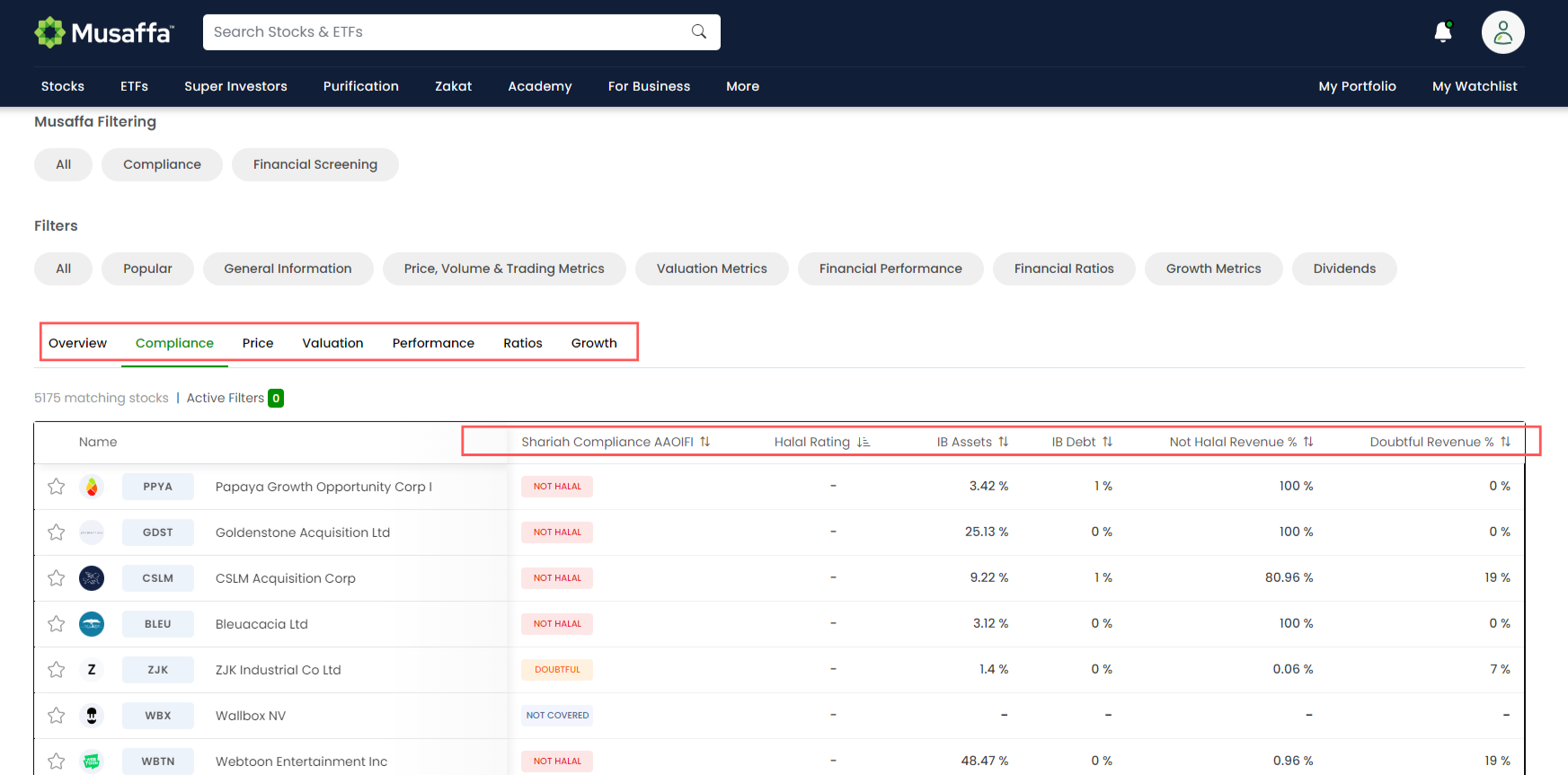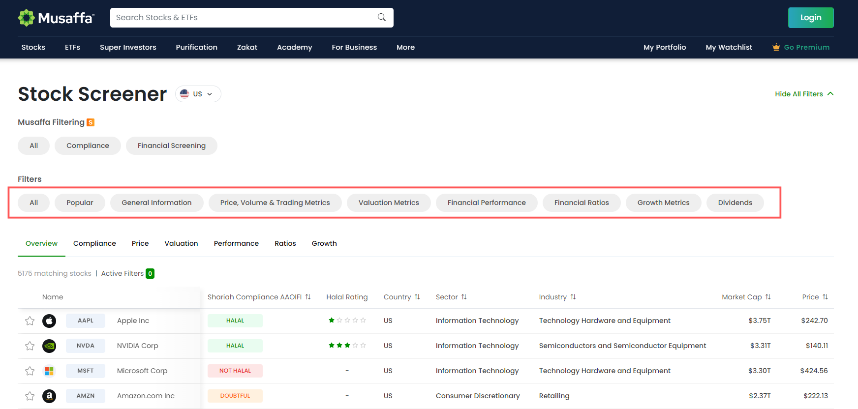 Visit the Stock Screener on the Musaffa platform.